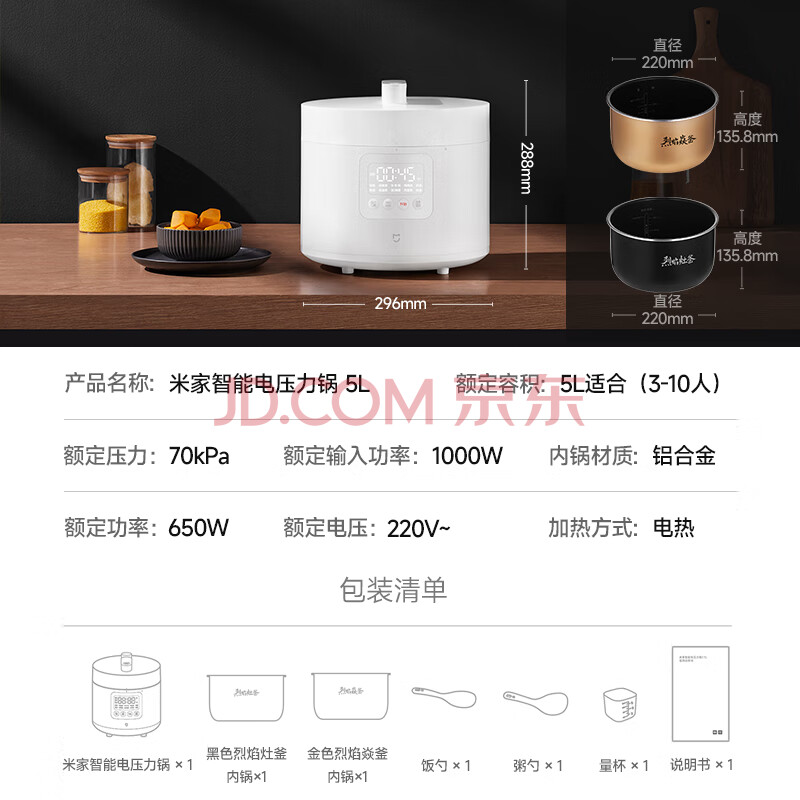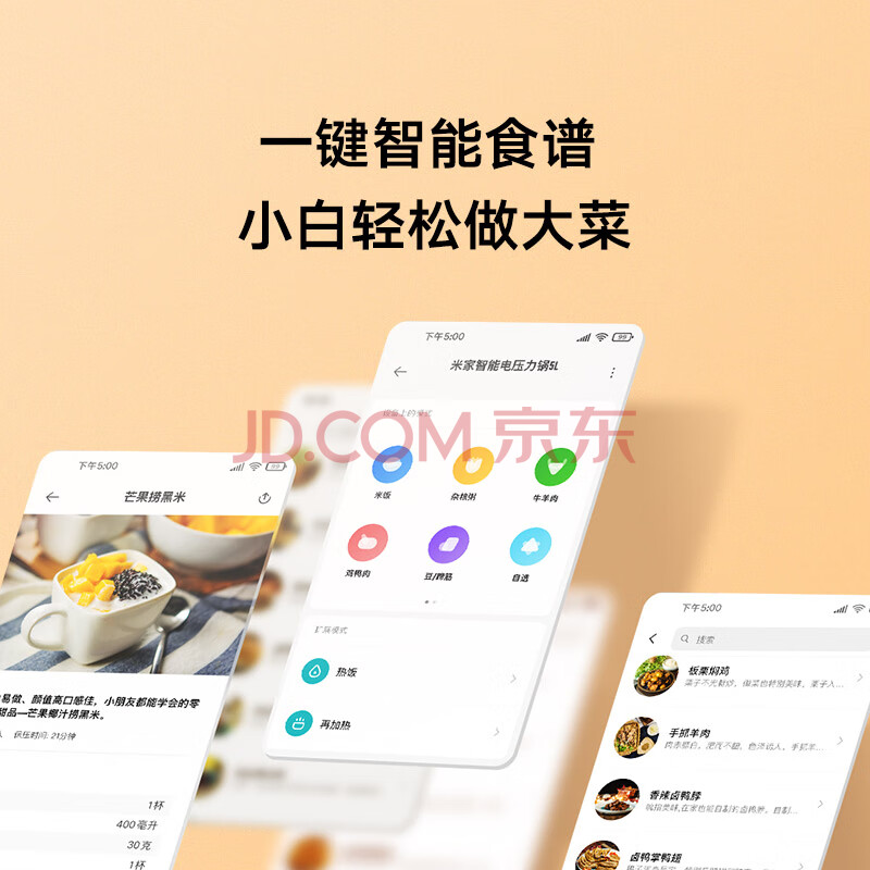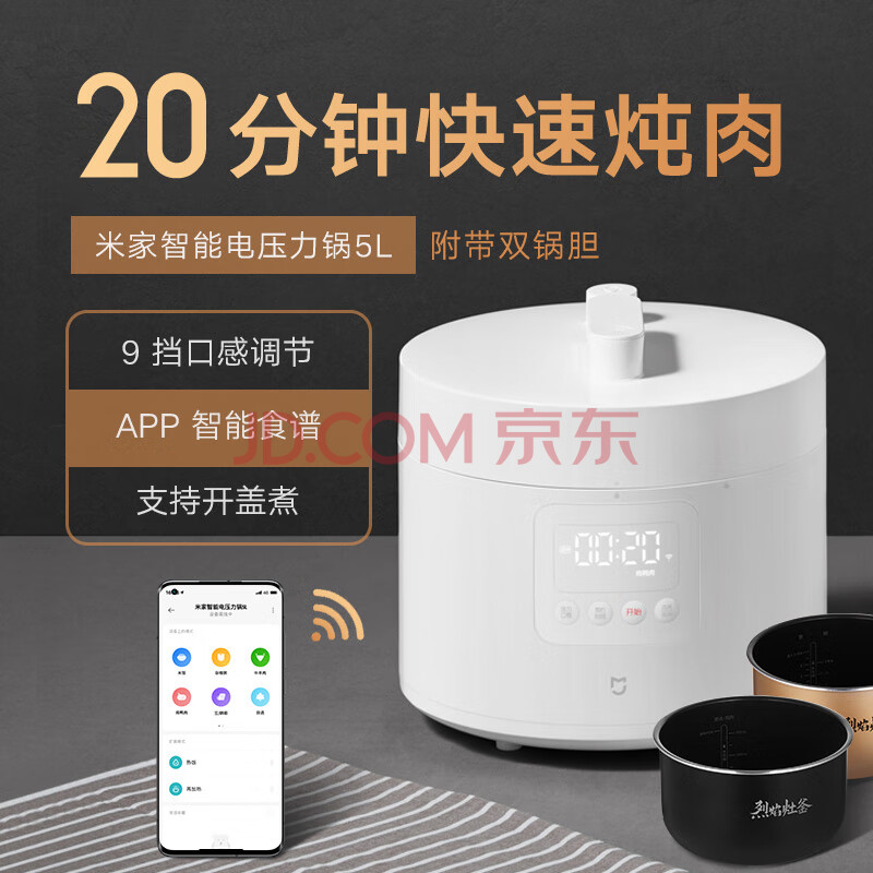 商品相册:米家小米电压力锅高压锅电饭煲家用4-5个人 多功能电炖锅煮饭煮粥锅 不粘锅双内胆大容量5L 第