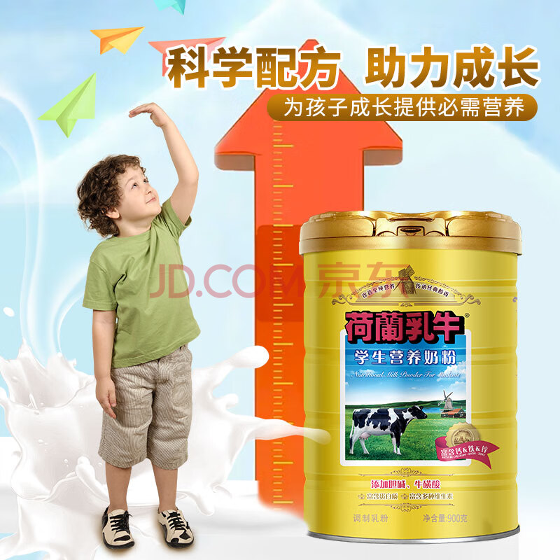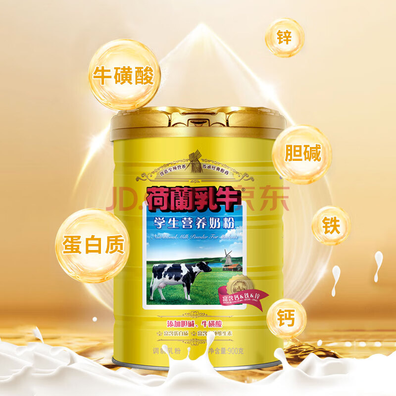 商品相册:荷兰乳牛学生营养奶粉 900g罐装添加牛磺酸胆碱学生小孩营养早餐第