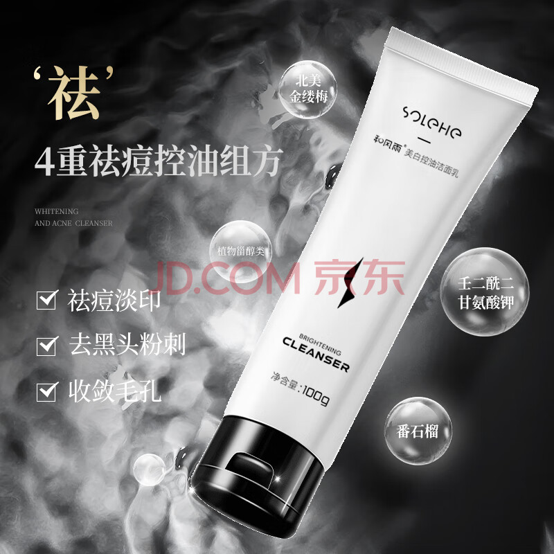 商品相册:和风雨(Hefengyu)氨基酸美白男士洗面奶100g 深层清洁 控油补水保湿 男士护肤品第