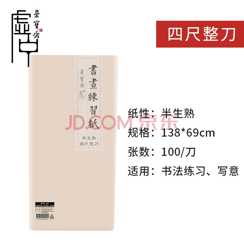 商品相册:荣宝斋 书画纸宣纸 日星宣纸加厚半生熟书法国画专用纸毛笔初学练习创作四尺对单开 精品-四尺整刀第