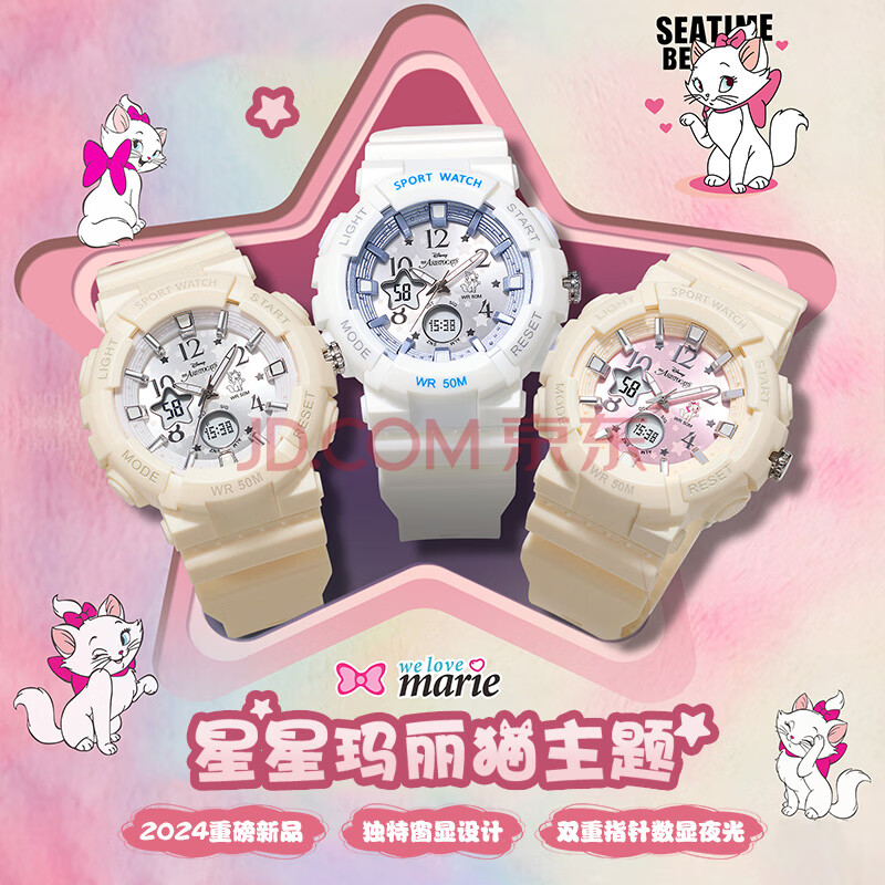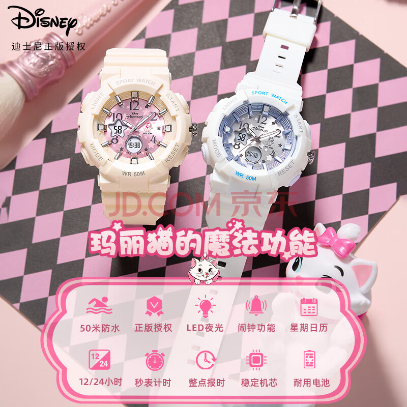 商品相册:迪士尼(Disney)运动手表女学生儿童个性潮流小学初中生女孩防水电子表生日礼物第