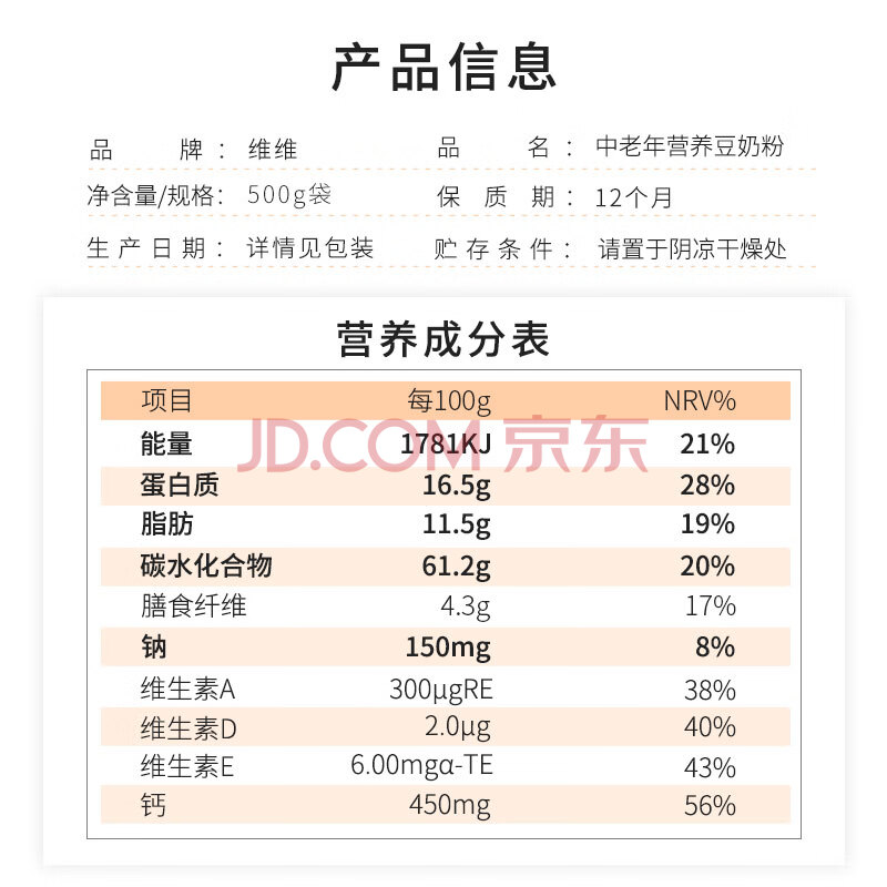 商品相册:维维中老年营养豆奶粉500g即食早餐冲饮代餐高钙多重营养非转基因大豆第1张/共9