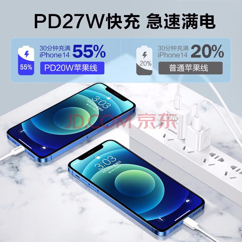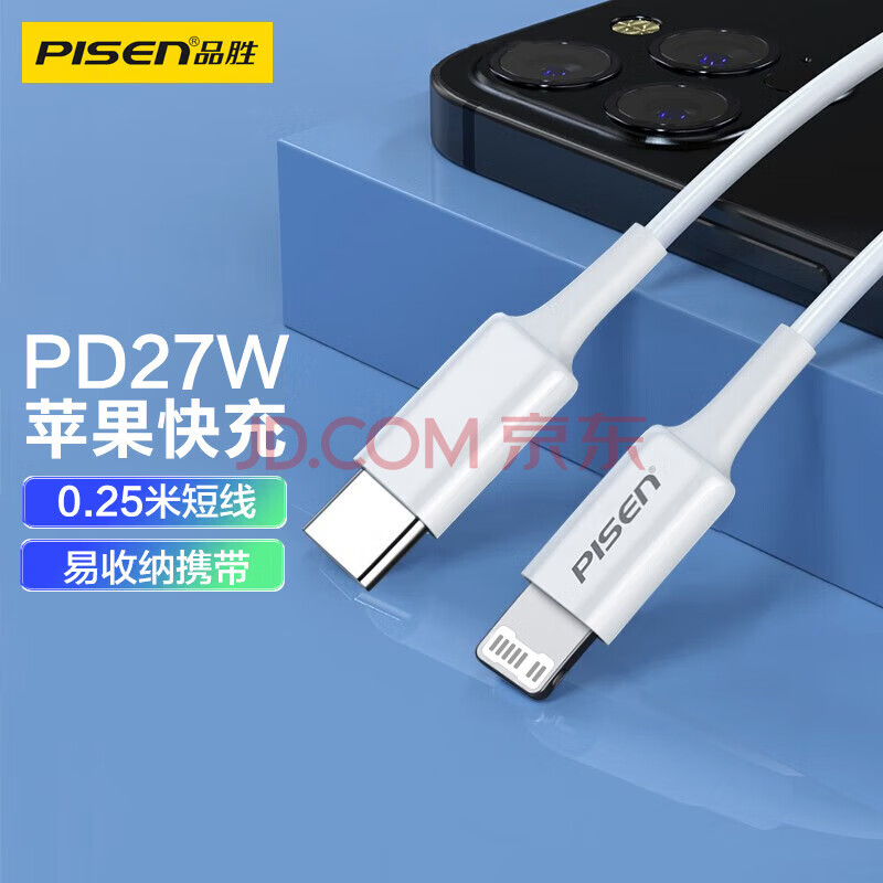 商品相册:品胜苹果数据线PD27W快充Type-C to Lightning充电短线USB-C适用iPhone14/13/12/Xs手机充电宝0.25米第