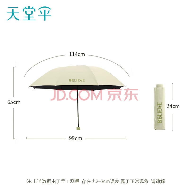 商品相册:天堂伞 防紫外线晴雨伞三折 黑胶防晒太阳伞遮阳伞57*8骨 信念米色第