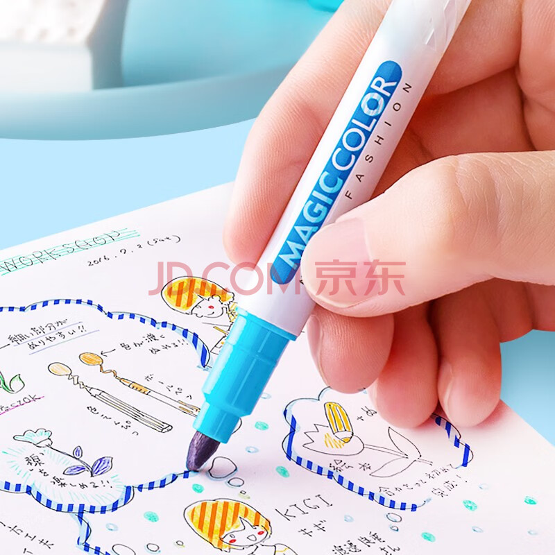 商品相册:金万年韩版魔幻变色双头荧光笔12色手账笔多色学生用彩色划重点标记G-0595-029第