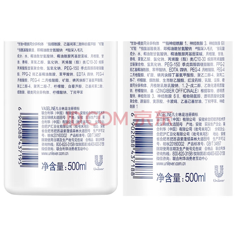 商品相册:凡士林烟酰胺焕亮净肤+玻尿酸保湿沐浴露500mlx2 男士女士沐浴香体皂液 第