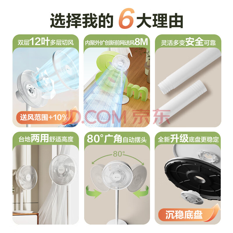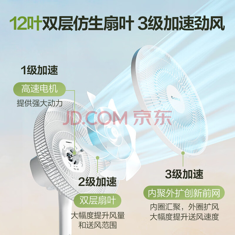 商品相册:格力(GREE)【全新升级】双层12扇叶轻音立式电风扇家用柔风落地扇台式桌面风扇大风量节能宿舍电扇 FS-3015h7第