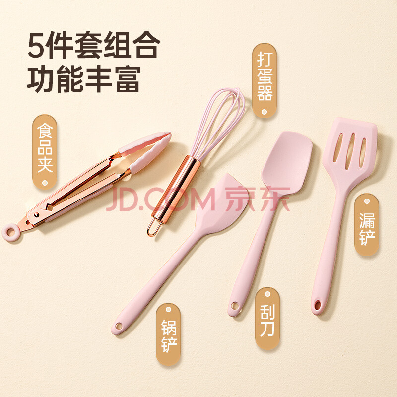 商品相册:炊大皇 烘焙工具套装 铲勺套装 硅胶刮刀硅胶铲硅胶夹打蛋器五件套 第
