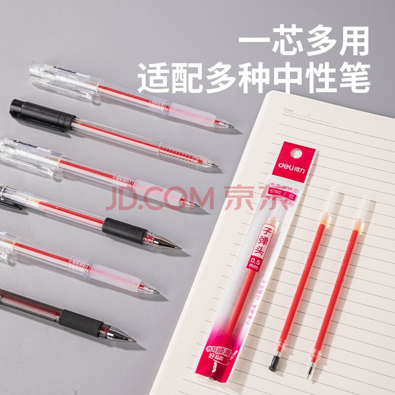 商品相册:得力(deli)中性笔笔芯s760红色0.5mm子弹头签字笔芯水笔替芯20支装第