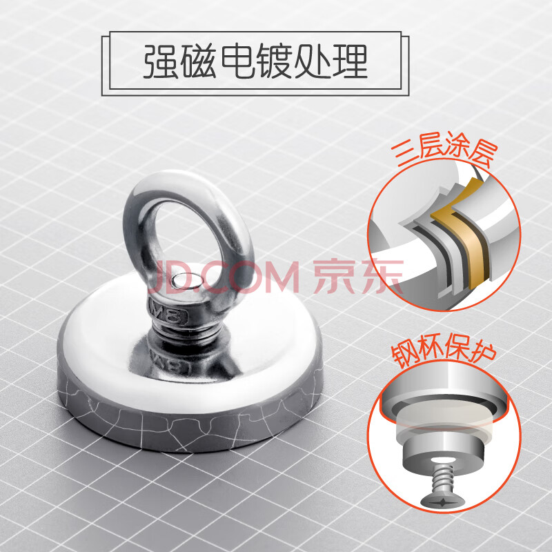 商品相册:DSB(迪士比)强磁吸铁石磁铁强力打捞专用圆形吸铁石钕铁硼吊环吸盘河道户外打捞神器直径42mm 1个装第1张/共7