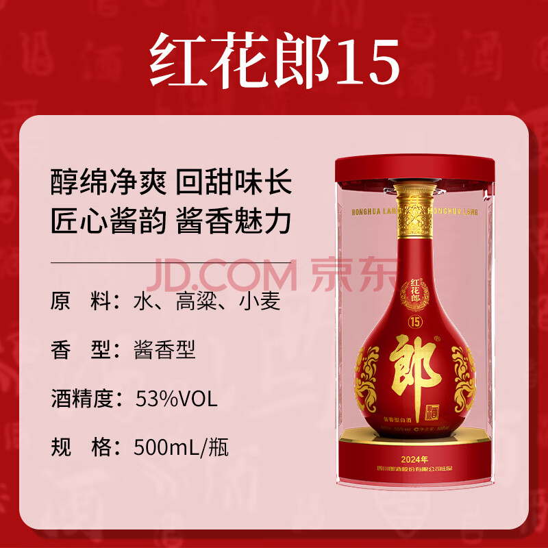 商品相册:郎酒 红花郎15 酱香型白酒 53度 500mL*6瓶 整箱装第