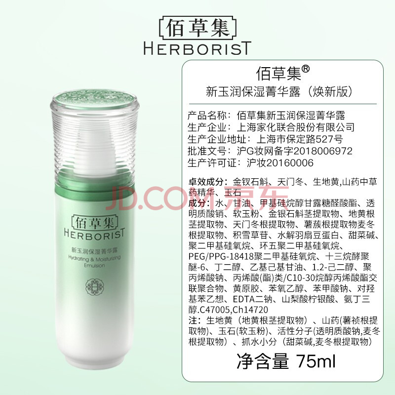 商品相册:佰草集新玉润保湿菁华露75ml高保湿面部乳液抗皱紧致修护补水护肤品第