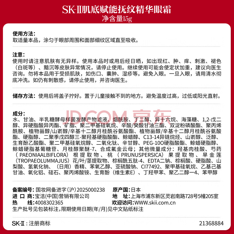 商品相册:SK-II大红瓶大眼眼霜15g淡化细纹祛眼袋化妆护肤品全套礼盒sk2生日礼物第