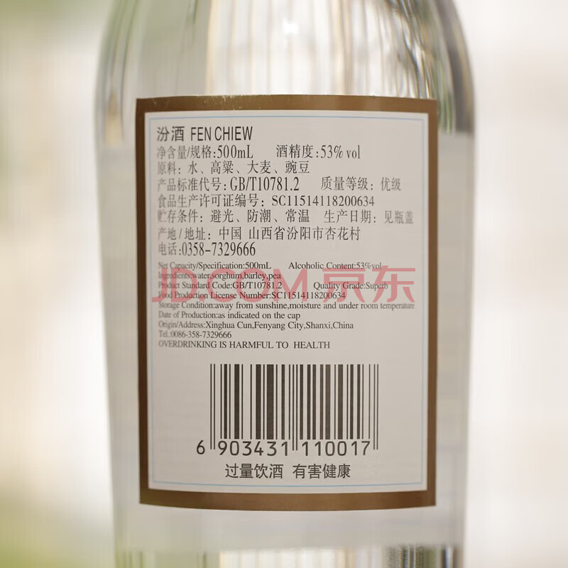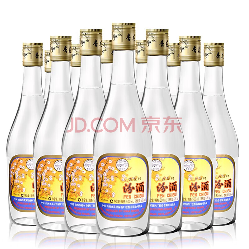 商品相册:汾酒 出口玻汾 清香型白酒 53度 500ml*12瓶 黄盖铝盖 整箱装第