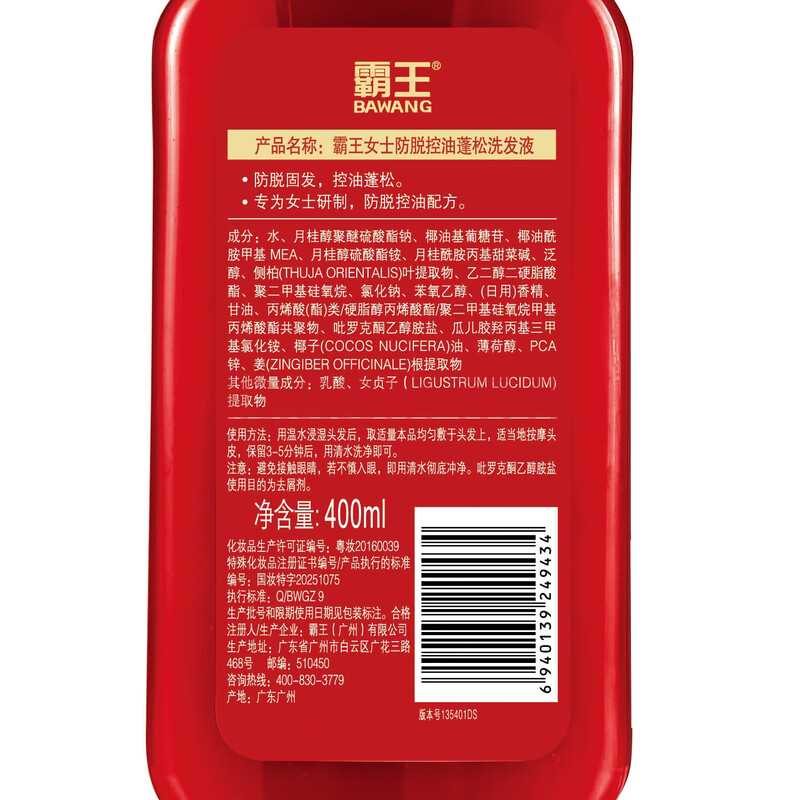 商品相册:霸王防脱洗发水控油蓬松防脱丰盈女士专用防断发掉发固发洗发露400ml第