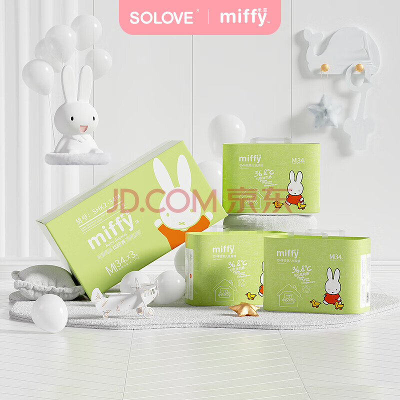 商品相册:solove米菲芯呼吸纸尿裤M102片(6-11kg)尿不湿 超薄纸尿裤箱装第