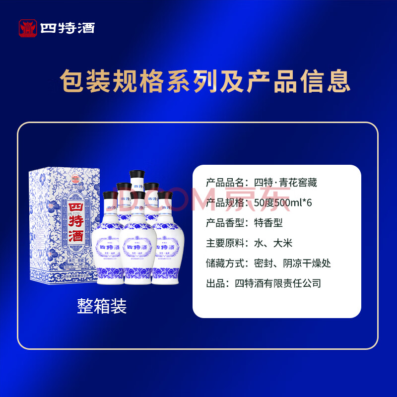 商品相册:四特酒 青花窖藏 特香型白酒 50度 500ml*6瓶 整箱装第