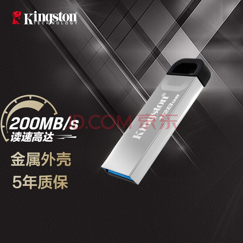 商品相册:金士顿(Kingston)128GB USB 3.2 Gen 1 U盘 DTKN 大容量U盘 金属外壳 读速200MB/s 学习办公投标电脑车载通用第