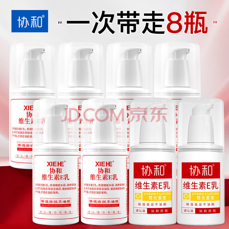 商品相册:协和维生素e乳100ml*8瓶家庭装乳液面霜护手霜身体乳补水保湿护肤第