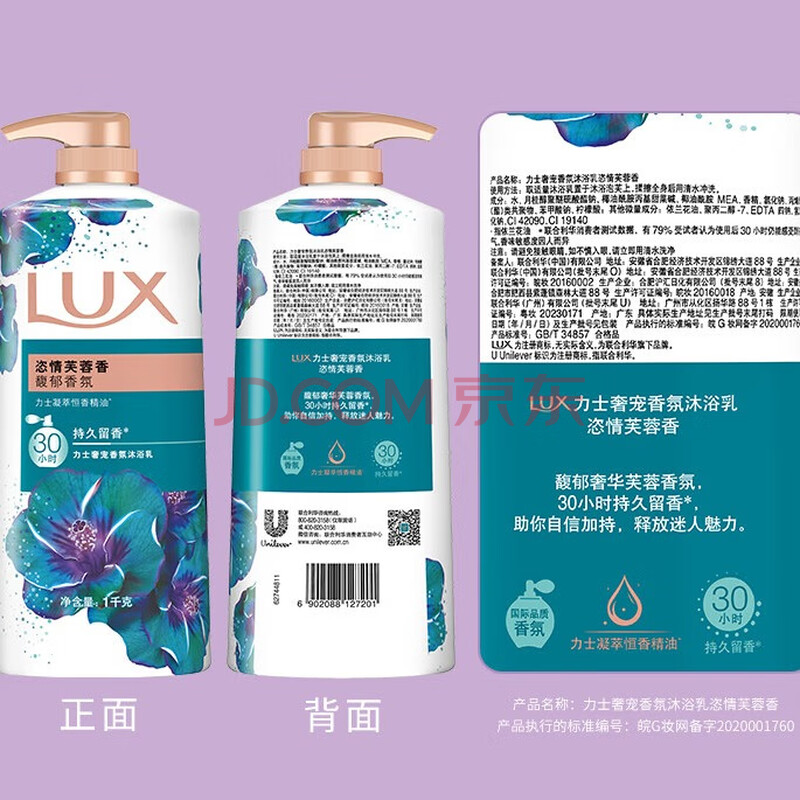 商品相册:力士(LUX)精油香氛沐浴露幽莲1kg+恣情1kg送补充装600g家庭装持久留香第