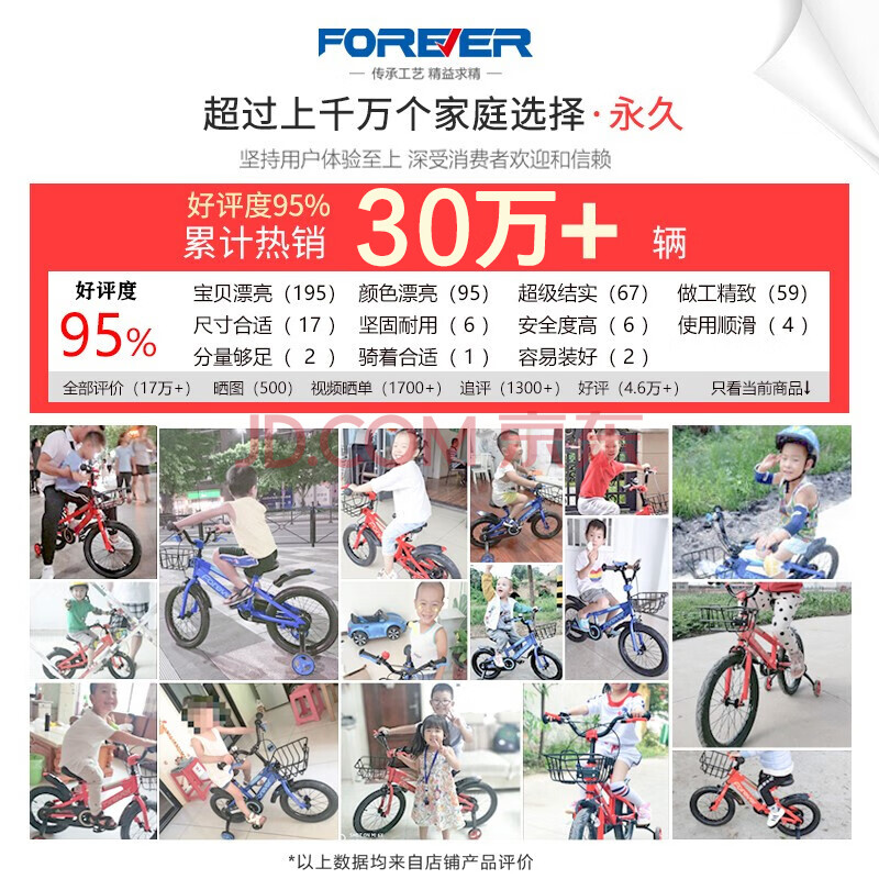 商品相册:永久(FOREVER)儿童自行车小孩6-10岁童车学生车脚踏车中大童单车山地车18寸红色第