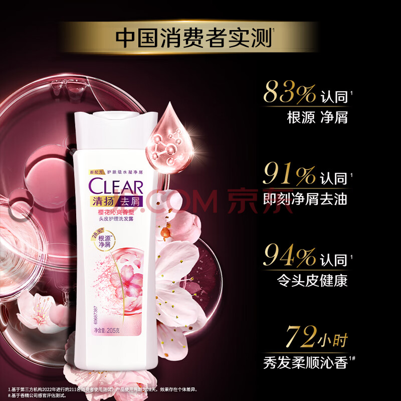 商品相册:清扬女士去屑洗发水 樱花沁爽205g 烟酰胺净屑止痒留香洗头膏京东自营第