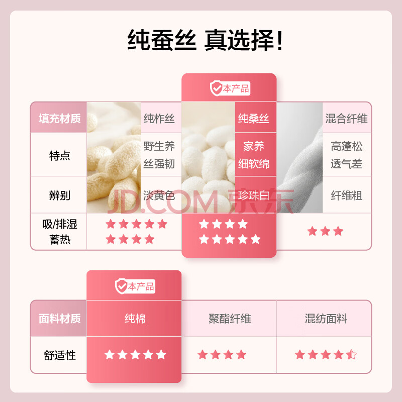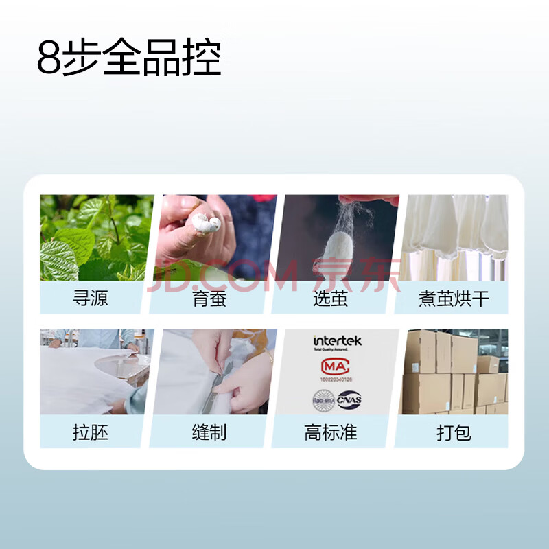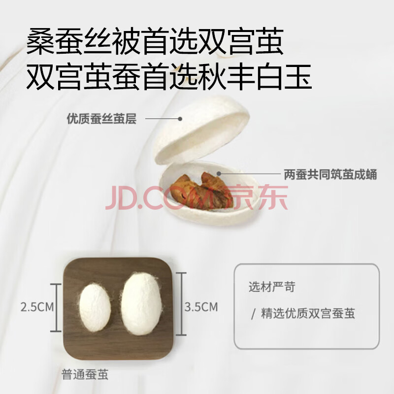 商品相册:京东京造双宫茧桑蚕丝被 被子空调被芯蚕丝四季被-春秋被2.2x2.4m约6斤第