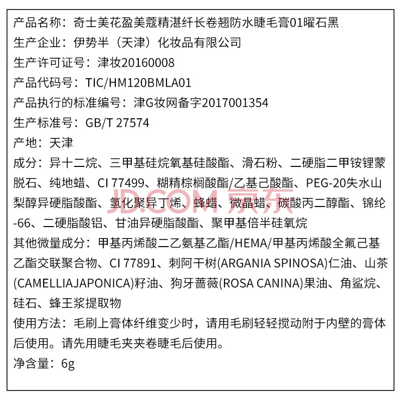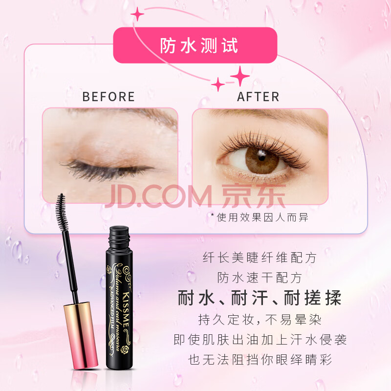 商品相册:奇士美(kiss me)花盈美蔻精湛纤长卷翘防水睫毛膏6g 01曜石黑(三代 不易晕染)第