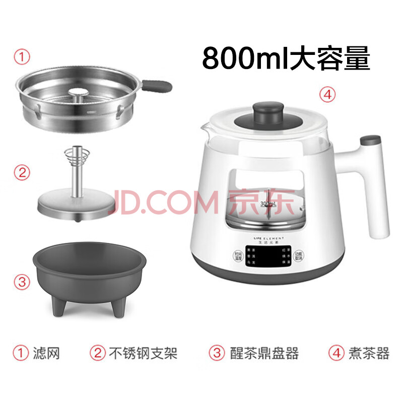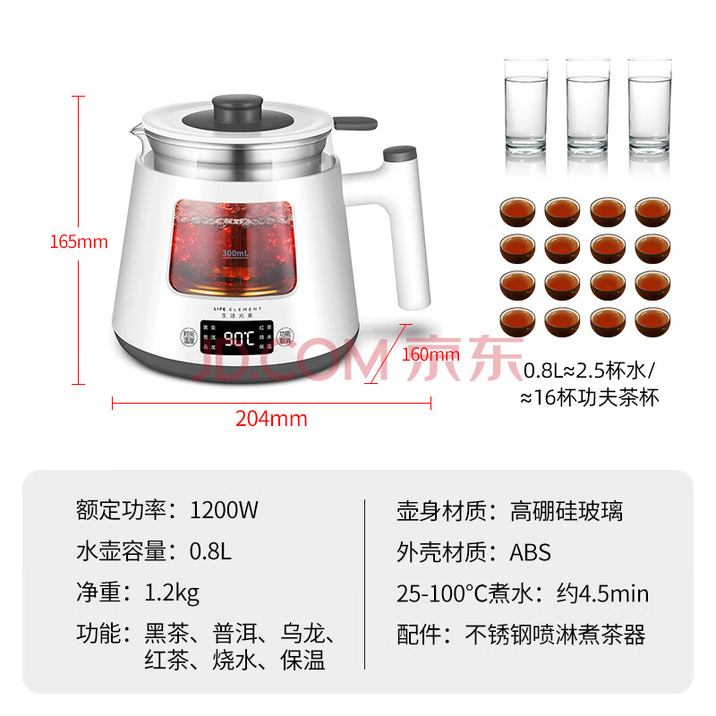 商品相册:生活元素(LIFE ELEMENT)养生壶 茶种自选1200W自动蒸汽喷淋式煮茶器 24小时保温慢享 0.8L办公室/家用 智能电热水壶 I19第