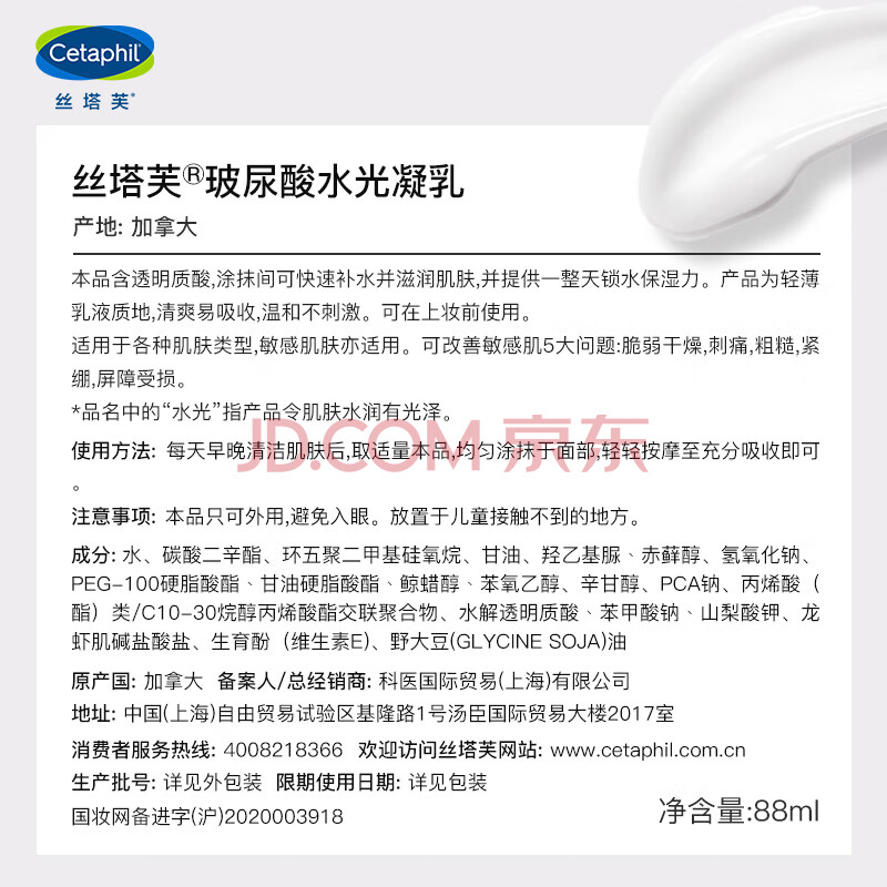 商品相册:丝塔芙玻尿酸水光乳88ml乳液补水面霜保湿温和精华男女敏感肌护肤品第