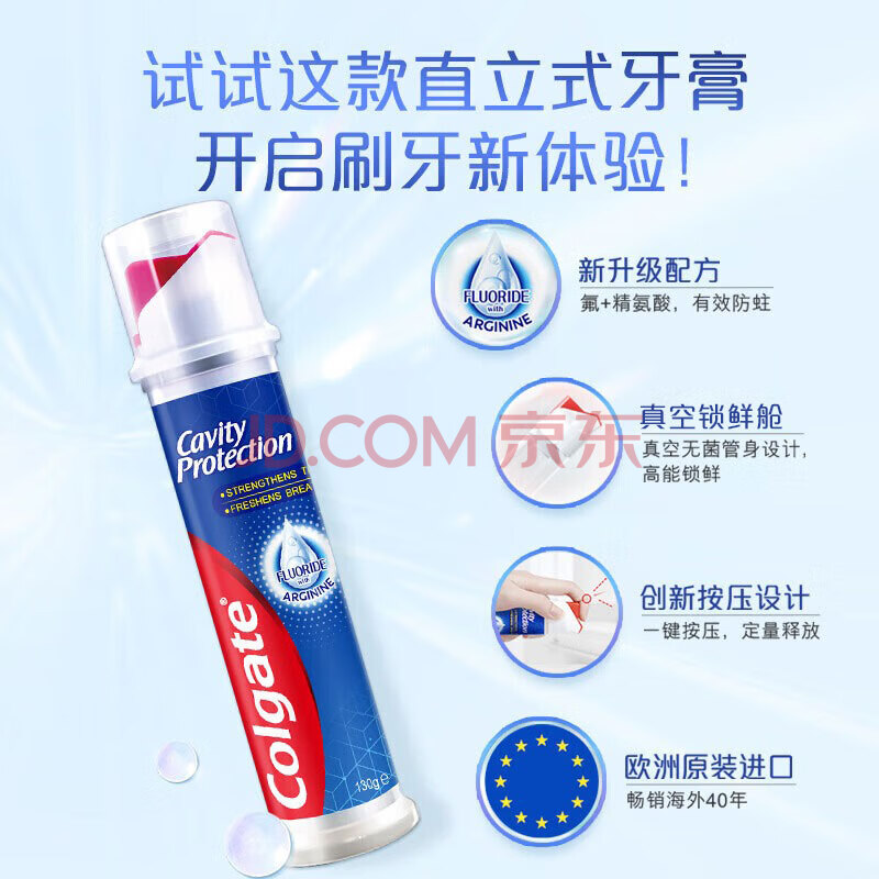 商品相册:高露洁(Colgate)【孙颖莎同款】欧洲进口卓效防蛀直立按压泵式牙膏130g*3含氟健齿第