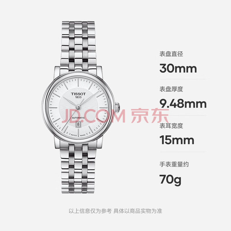 商品相册:天梭(TISSOT) 卡森臻我系列女表 瑞士自动机械女士钢带腕表商务表生日礼物第
