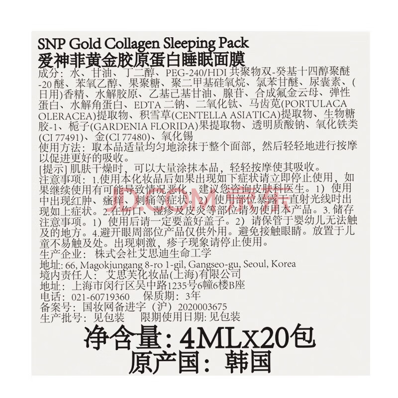 商品相册:SNP-黄金睡眠面膜20支/盒第