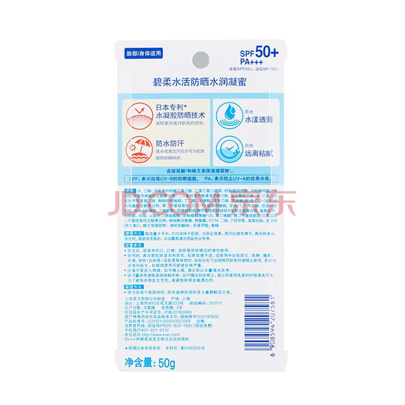 商品相册:碧柔(Biore)花王水活防晒凝蜜高倍防晒霜50g隔离霜防紫外线护肤品通勤出游第