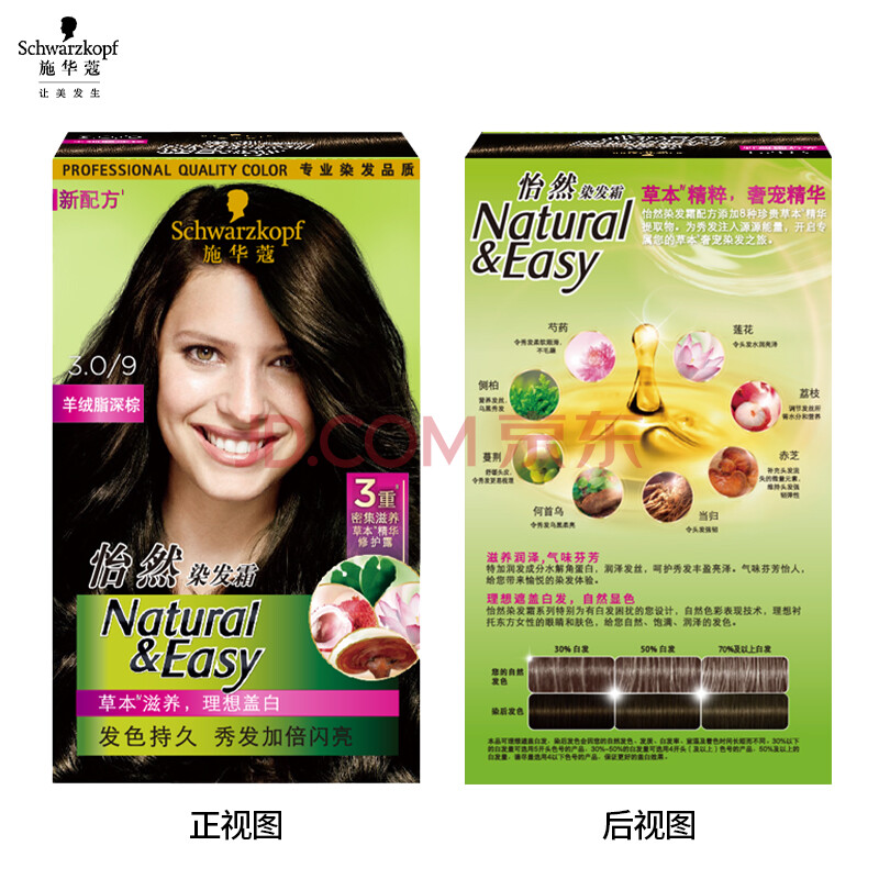 商品相册:施华蔻(Schwarzkopf)怡然染发霜3.0/9羊绒脂深棕*2 黑茶色染发膏盖白赠多效润发乳60ml第