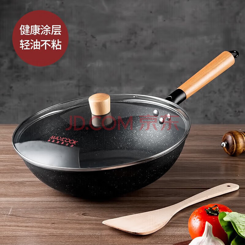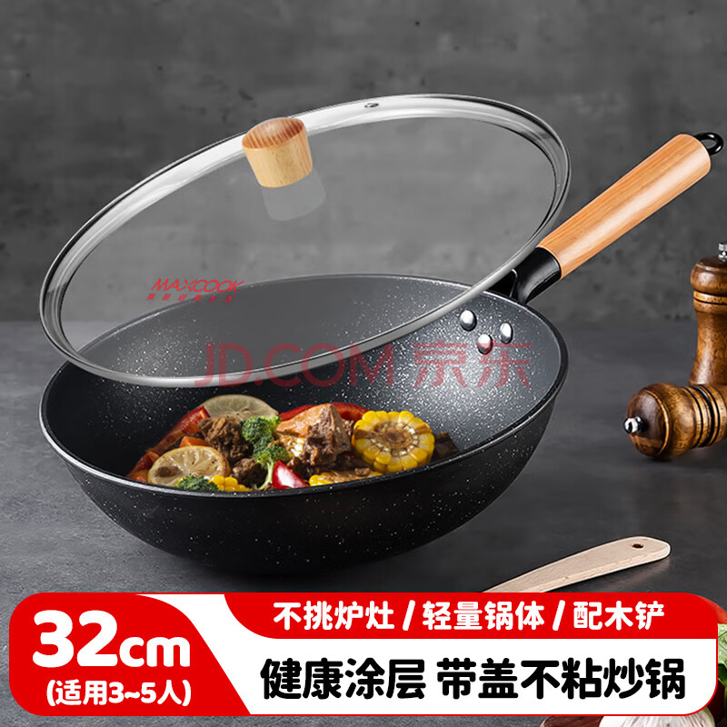 商品相册:美厨(maxcook)不粘炒锅 精铁带盖带木铲32cm 不粘涂层 燃气电磁炉通用MCC559第