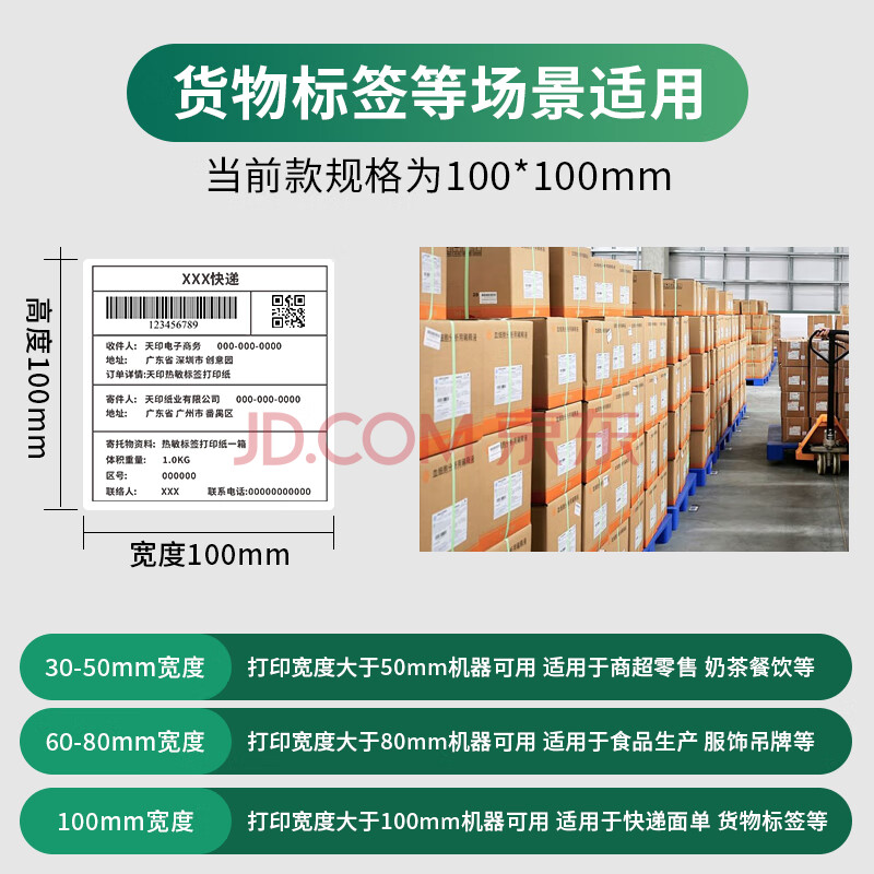 商品相册:天印(Tanyo) 100*100mm 500张*4卷 三防热敏标签纸 不干胶打印纸 快递物流面单 货物条码标签纸第