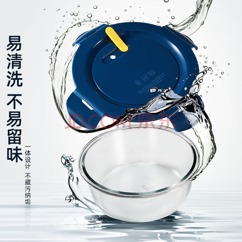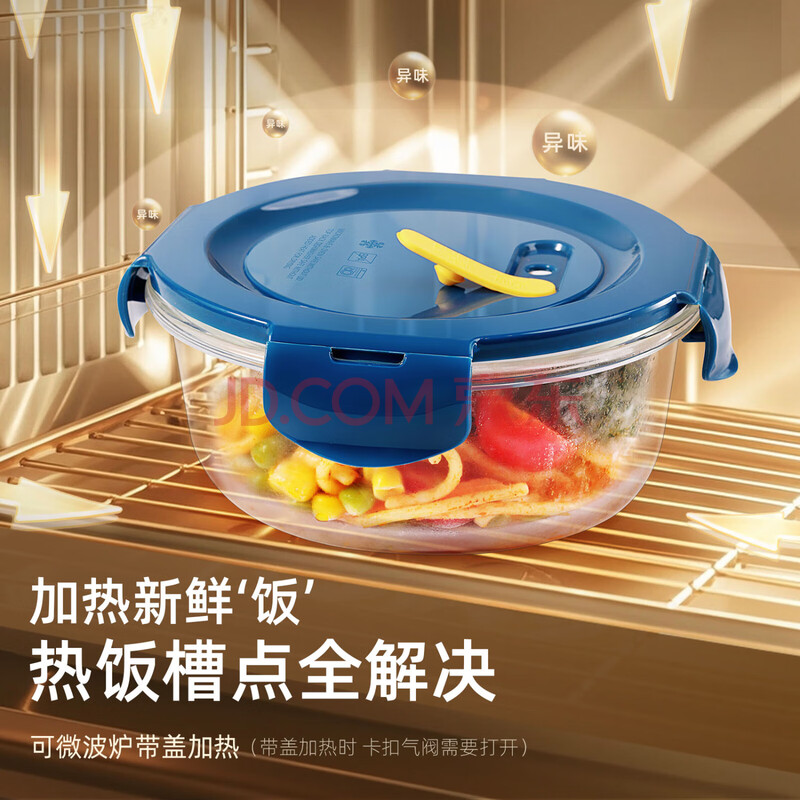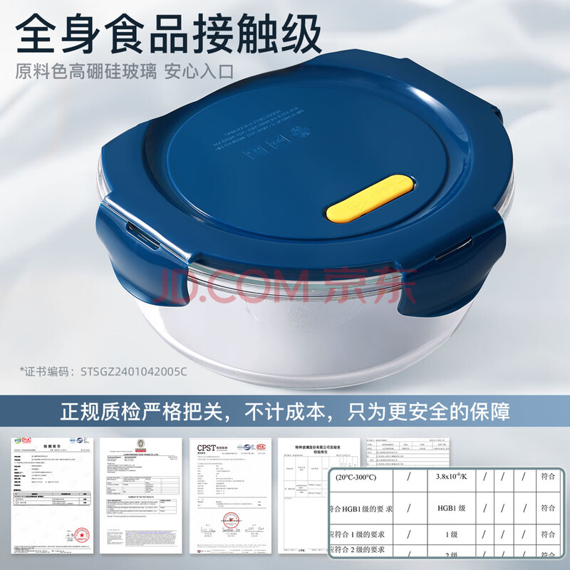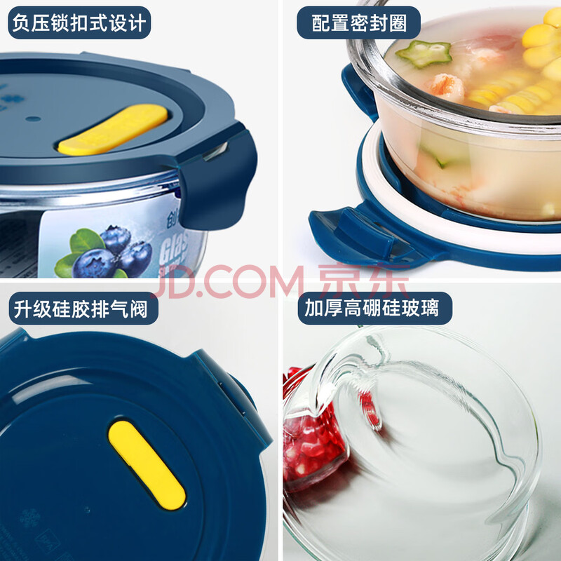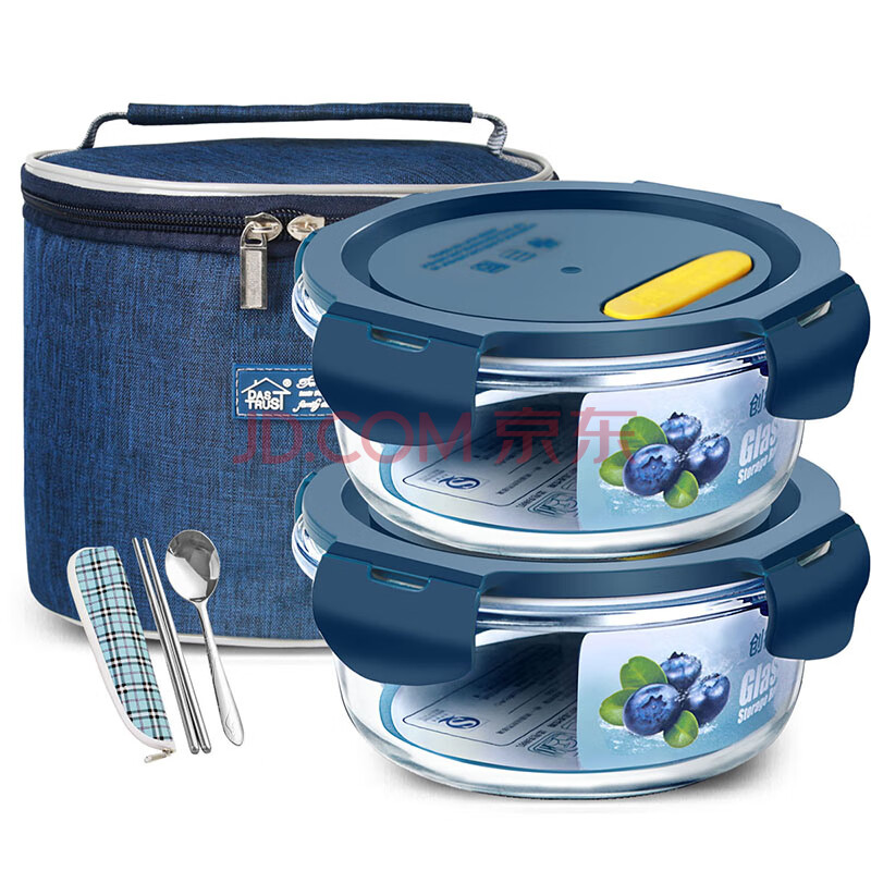 商品相册:创得耐热玻璃保鲜盒微波炉饭盒上班族便当盒星海蓝圆1000ml*2+包+餐具第