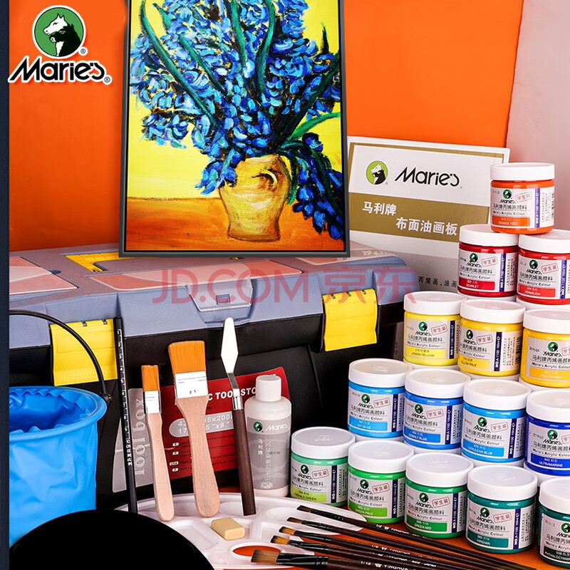 商品相册:马利(Marie's)丙烯颜料24色100ml高配版+工具箱套装常用色组合装初学者墙绘手绘防水丙烯画颜料套装美育工具第