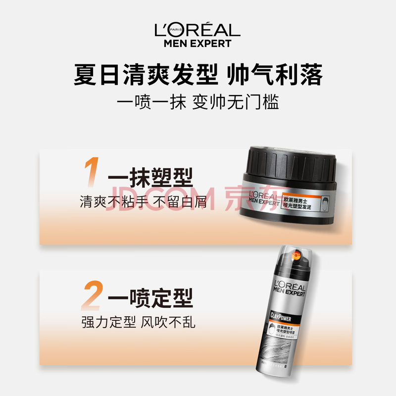 商品相册:欧莱雅男士哑光塑型发泥发蜡发膏发胶造型持久定型塑型喷雾200ml第