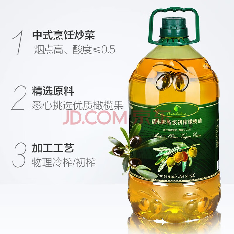 商品相册:蓓琳娜(BELLINA)【保真橄榄油】欧洲原油进口100%特级初榨橄榄油5L健康炒菜食用油第