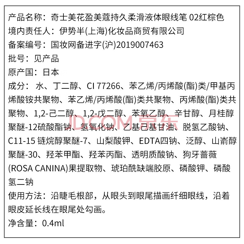 商品相册:奇士美(kiss me)花盈美蔻持久柔滑液体眼线笔0.4ml 02红棕色 不易晕染 防水防汗第