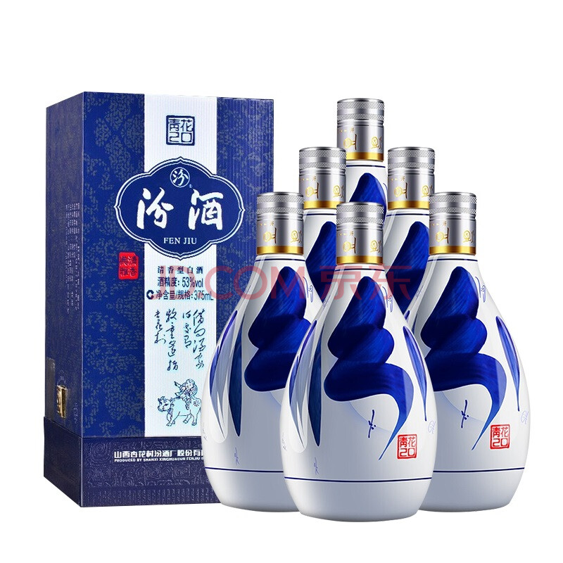 商品相册:汾酒 青花20 清香型高度白酒 53度375ml*6瓶 整箱装第