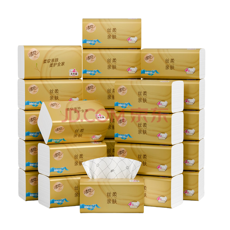 商品相册:清风【李昀锐同款】抽纸 丝柔4层100抽*24包M码 纸巾抽 面巾纸 整箱第
