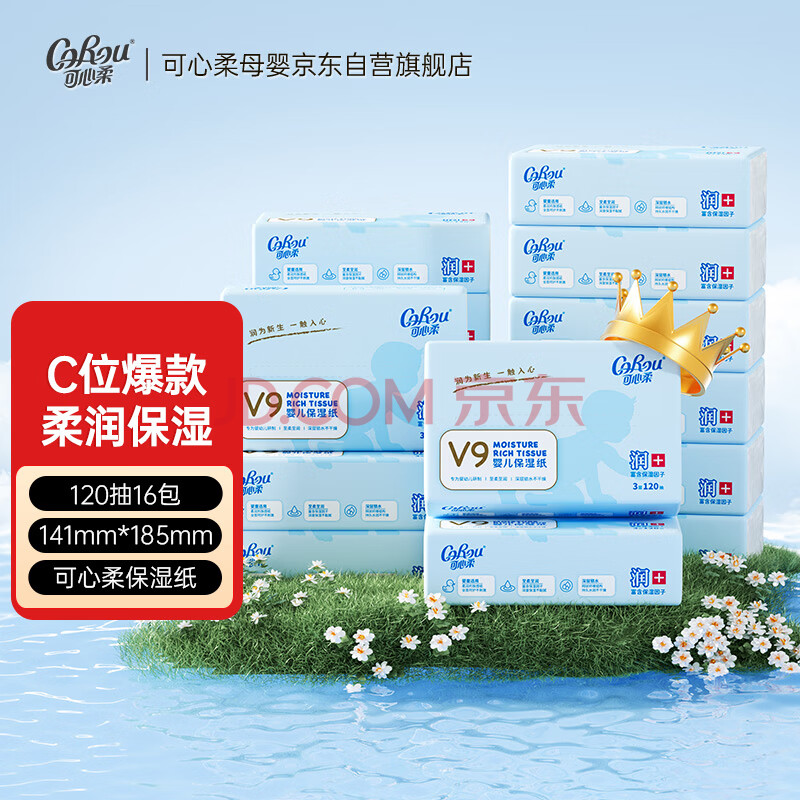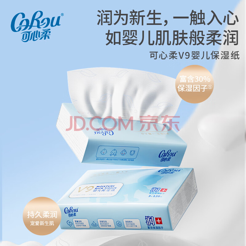 商品相册:可心柔(COROU)婴儿乳霜纸 云柔巾 3层120抽16包 M码 新生儿专用纸巾 抽纸 整箱第1张/共6