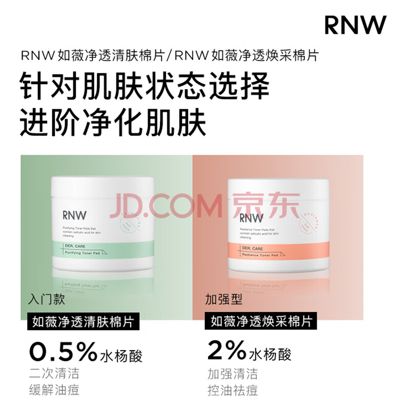 商品相册:如薇(RNW)温和型0.5%水杨酸棉片60片去油清洁痘肌角质黑头粉刺闭口男女护肤第