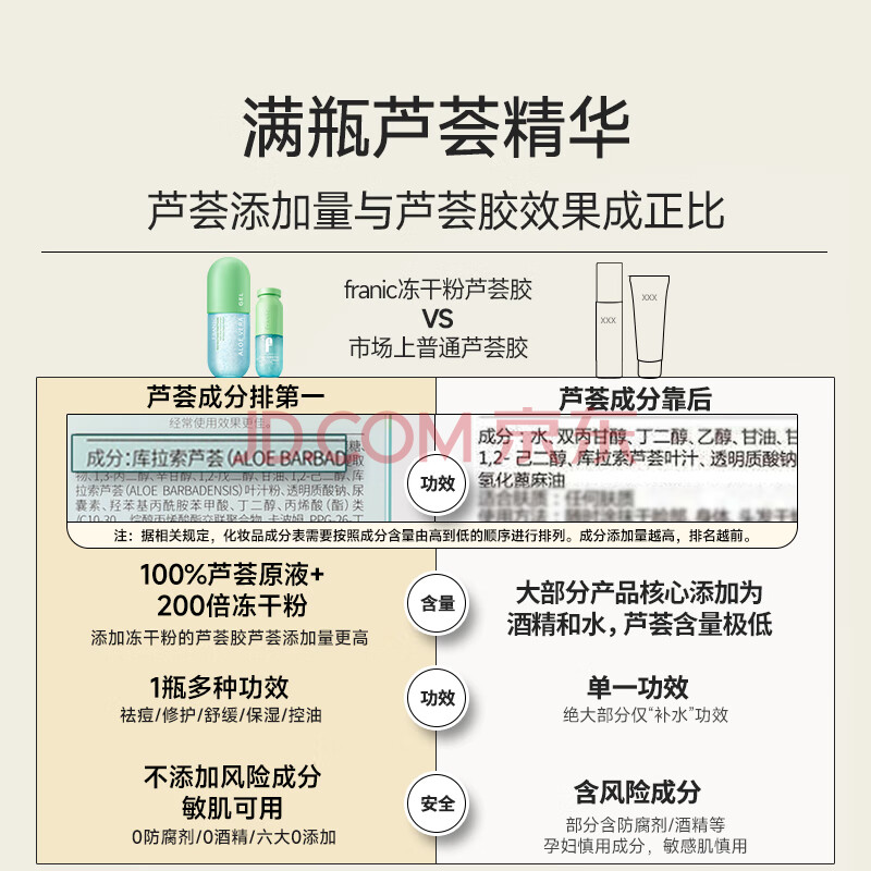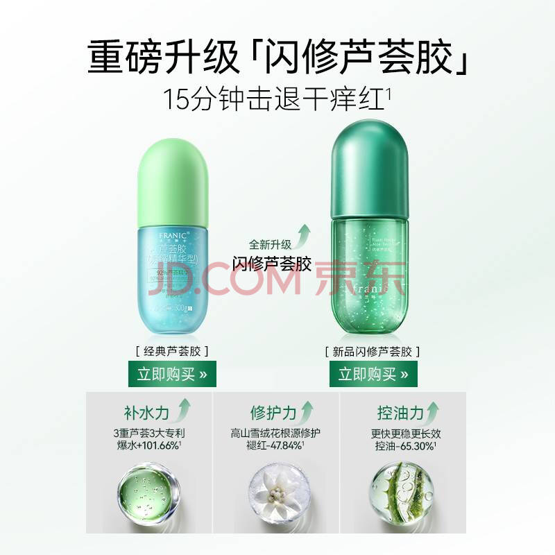 商品相册:法兰琳卡芦荟胶修护皮肤晒后祛痘收缩毛孔男女士专用300g生日礼物女士第
