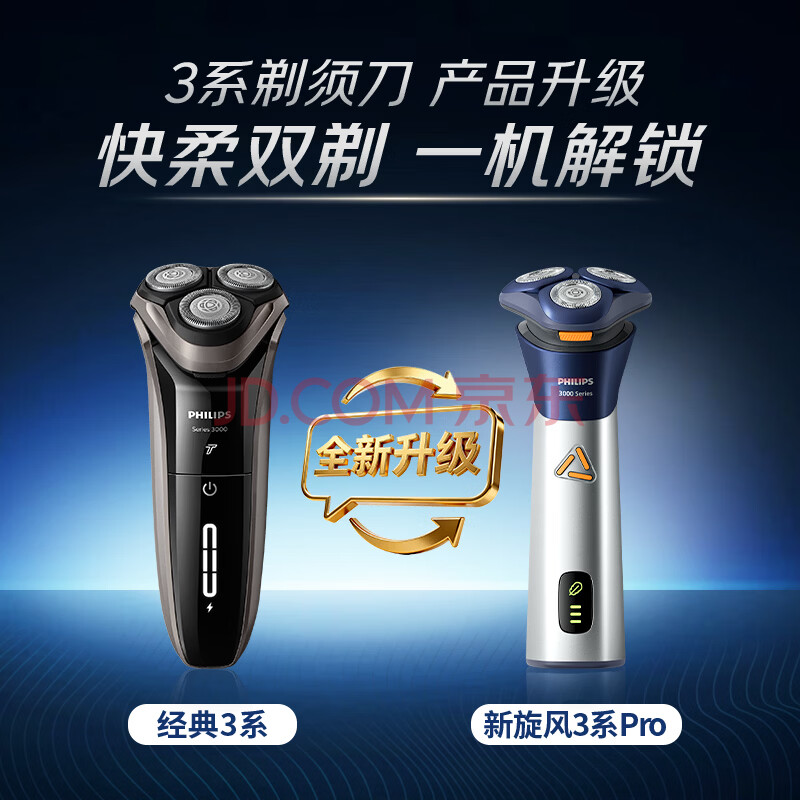 商品相册:飞利浦电动剃须刀旋风3系PRO刮胡刀礼盒 风驰切剃6D浮动刀头 生日礼物送男生男友老公父亲第