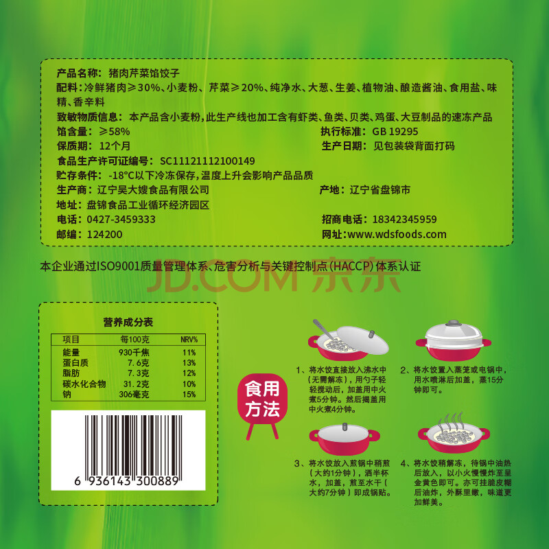 商品相册:吴大嫂 东北水饺 猪肉芹菜 800g 40只 蒸饺煎饺锅贴速冻 速食早餐第