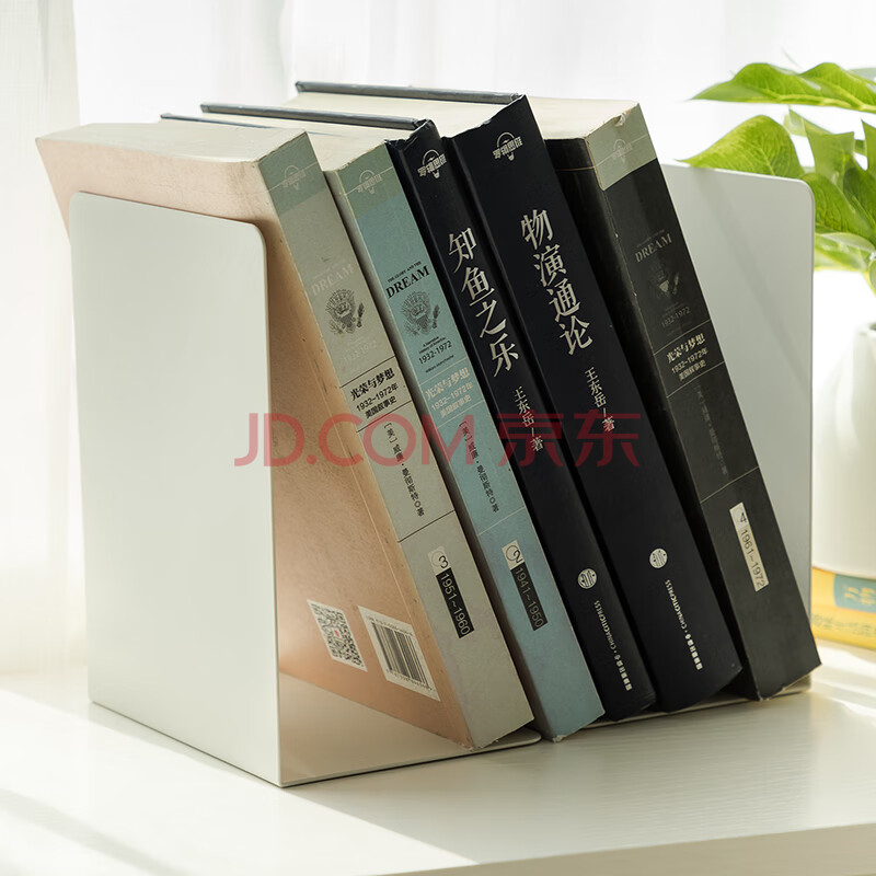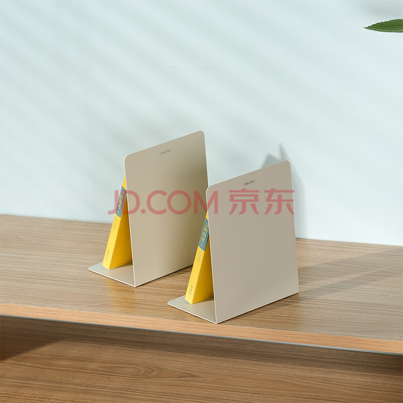 商品相册:得力(deli)18cm简约桌面书立置物架收纳书架 书籍挡靠夹 办公学习用品 2片/ 米白78650第